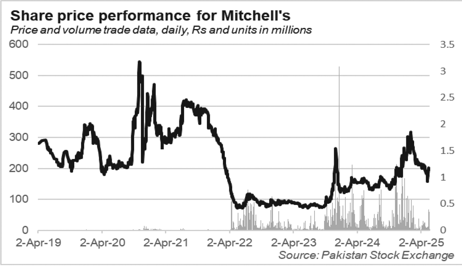 The nine month performance of the most recent year shows that the profits of the past year are slowly dissipating away. Mitchell’s earned revenues of Rs 2 billion last year and revenues stayed similar in the recent year as well. Gross profit margins also retained a similar 29% for both the years as well. One of the biggest differences was the increase in distribution and marketing expenses as it saw Rs 29 crores in 2025 while it was Rs 23 crores a year before. In addition to that, other income for 2024 was Rs 3.1 crores which decreased to Rs 1.7 crores this year. The collective impact of this was that profits fell by Rs 8 crores compared to last year.
