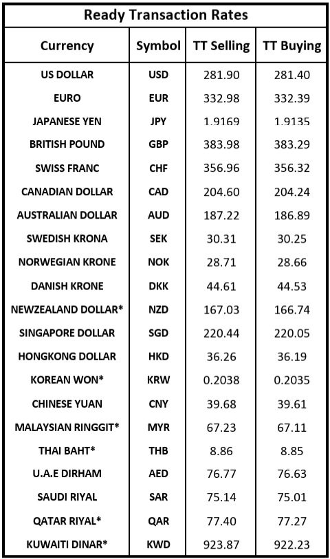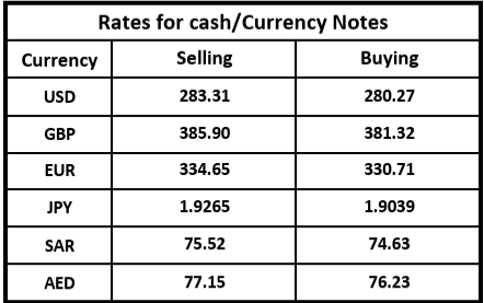 The Treasury & Capital Markets Group of the National Bank of Pakistan (NBP) issued the following Exchange Rates Bulletin on Thursday.
