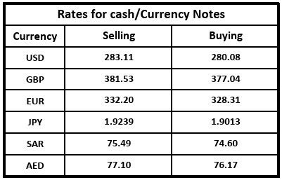 The Treasury & Capital Markets Group of the National Bank of Pakistan (NBP) issued the following Exchange Rates Bulletin on Thursday.