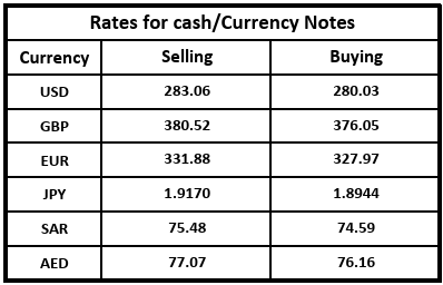 The Treasury & Capital Markets Group of the National Bank of Pakistan (NBP) issued the following Exchange Rates Bulletin on Friday.