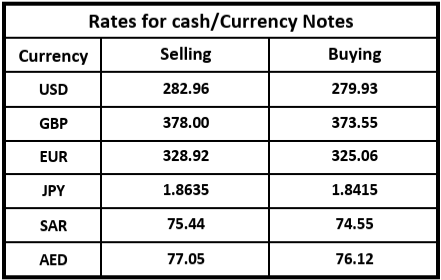 The Treasury & Capital Markets Group of the National Bank of Pakistan (NBP) issued the following Exchange Rates Bulletin on Monday.