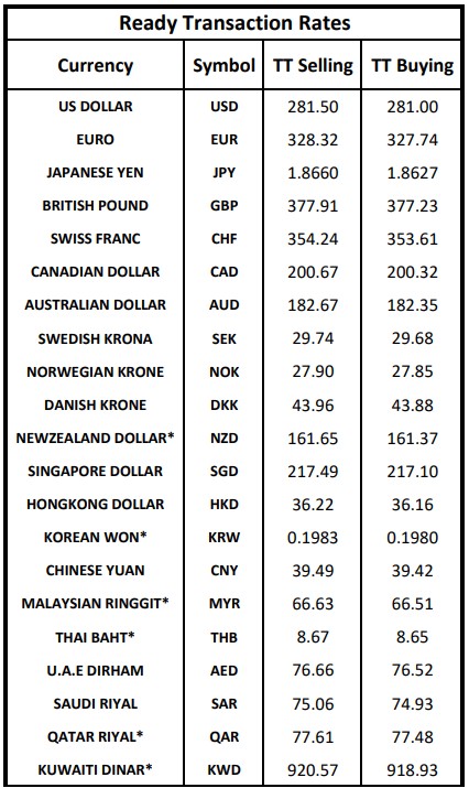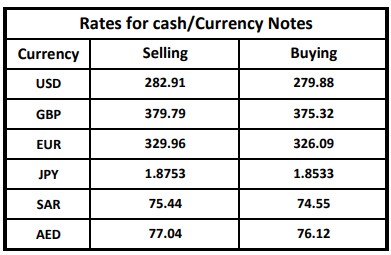 The Treasury & Capital Markets Group of the National Bank of Pakistan (NBP) issued the following Exchange Rates Bulletin on Thursday.