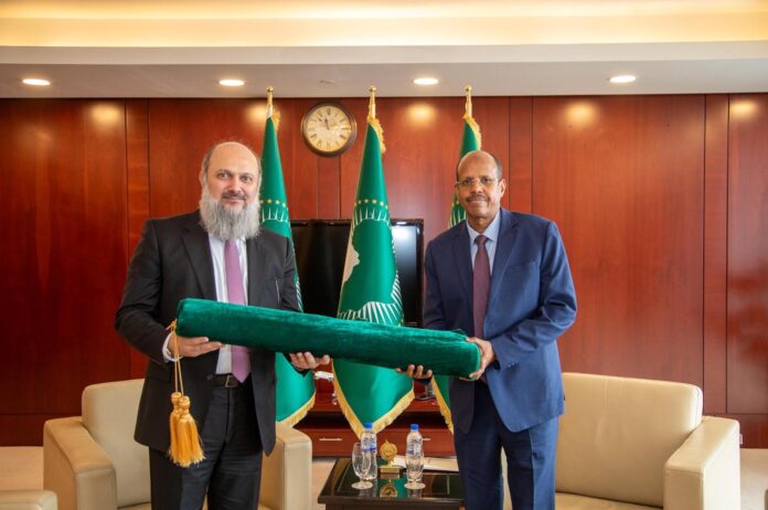 Federal Minister for Commerce Jam Kamal Khan met with African Union (AU) Chairperson Mahmoud Ali Youssouf on Friday on the sidelines of the “Made in Pakistan” exhibition in Addis Ababa, reaffirming Pakistan’s commitment to strengthening trade and development cooperation with Africa under its Look Africa Policy.