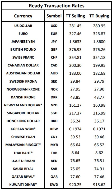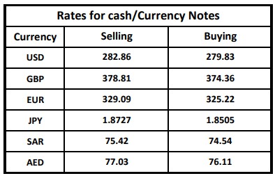 The Treasury & Capital Markets Group of the National Bank of Pakistan (NBP) issued the following Exchange Rates Bulletin on Tuesday.