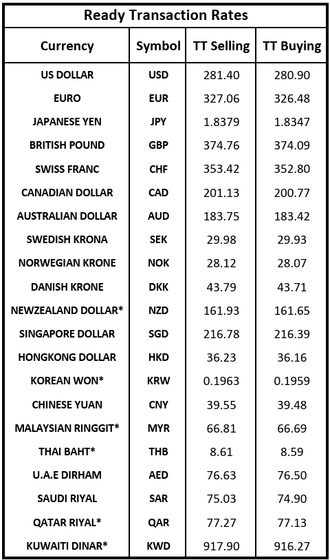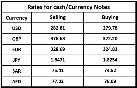 The Treasury & Capital Markets Group of the National Bank of Pakistan (NBP) issued the following Exchange Rates Bulletin on Monday.