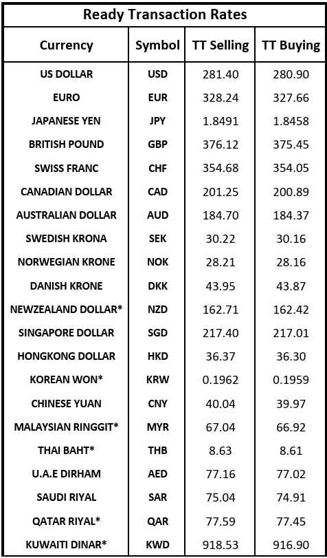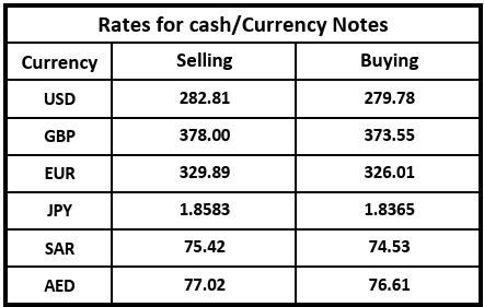 The Treasury & Capital Markets Group of the National Bank of Pakistan (NBP) issued the following Exchange Rates Bulletin on Tuesday.
