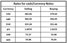 The Treasury & Capital Markets Group of the National Bank of Pakistan (NBP) issued the following Exchange Rates Bulletin on Thursday.