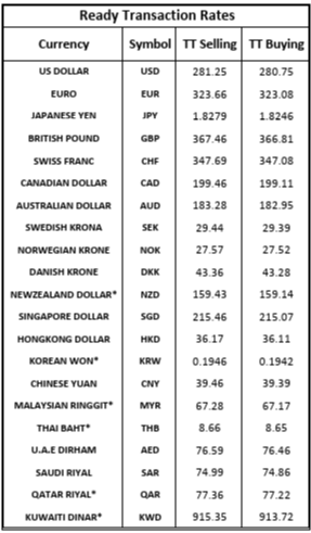 The Treasury & Capital Markets Group of the National Bank of Pakistan (NBP) issued the following Exchange Rates Bulletin on Thursday.