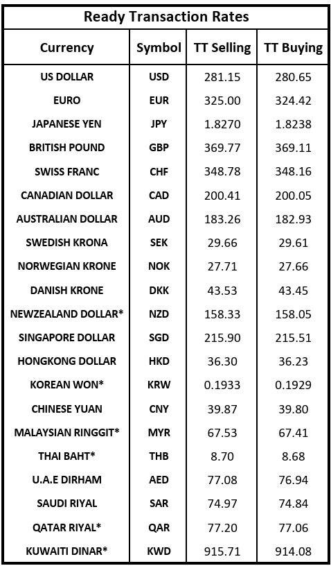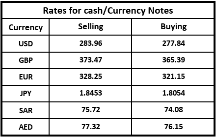 The Treasury & Capital Markets Group of the National Bank of Pakistan (NBP) issued the following Exchange Rates Bulletin on Monday.