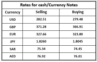 The Treasury & Capital Markets Group of the National Bank of Pakistan (NBP) issued the following Exchange Rates Bulletin on Monday.
