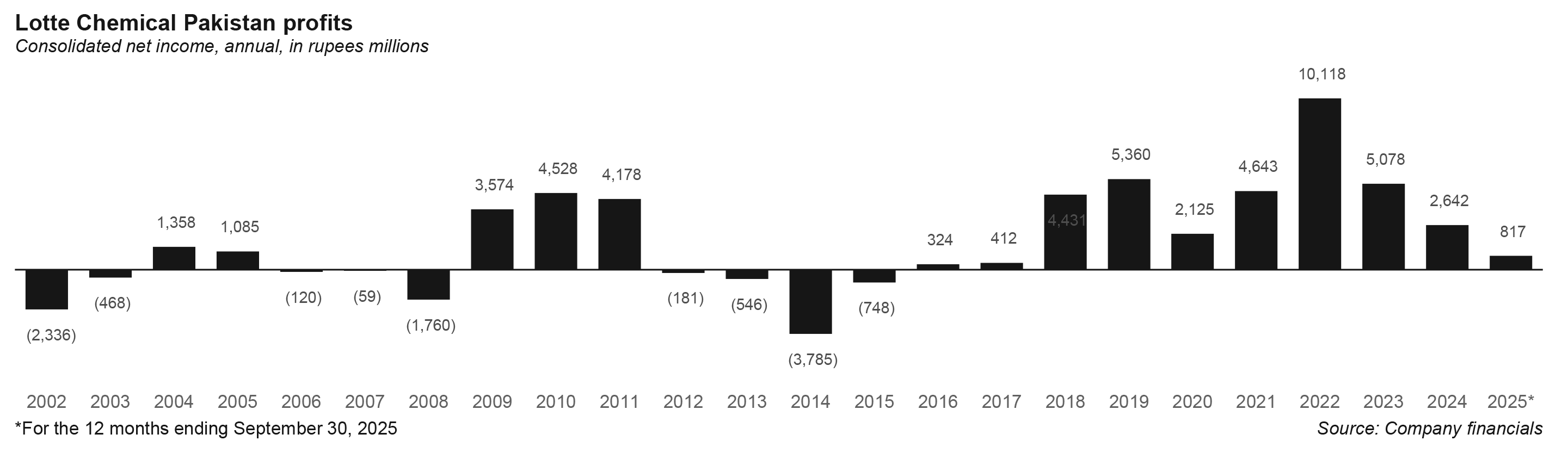 The deal went through for $69 million, or around Rs 17 per share of the publicly listed company. Lotte’s share price the day the deal was announced was Rs 27.75, which would indicate that the South Koreans are selling it at a discount. The negotiations for the deal have been going on since February, and the lowest share price for Lotte in the past year has been Rs 16.71 in May 2025. This is starkly different from the sale of a different limb of ICI in 2012, when the Lucky Group bought a 75% stake in ICI Pakistan’s chemical business for $152 million at a premium of 29.7%. What makes this deal even more interesting is the fact that the Lucky Group had actually signed a share purchase agreement with Lotte back in 2023 to buy this same 75% stake in the plastics company for a significantly higher Rs 31.29 per share.