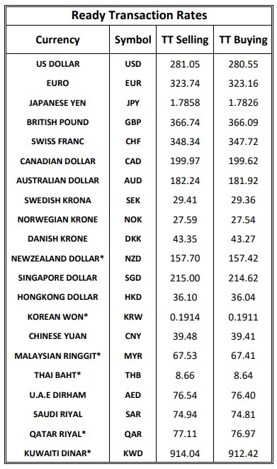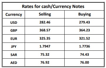 The Treasury & Capital Markets Group of the National Bank of Pakistan (NBP) issued the following Exchange Rates Bulletin on Thursday.