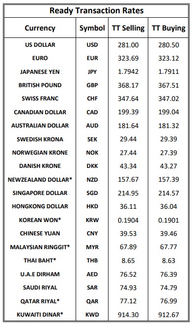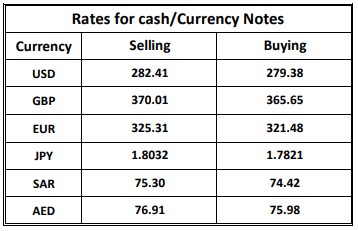 The Treasury & Capital Markets Group of the National Bank of Pakistan (NBP) issued the following Exchange Rates Bulletin on Monday.
