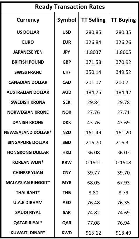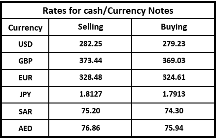 The Treasury & Capital Markets Group of the National Bank of Pakistan (NBP) issued the following Exchange Rates Bulletin on Wednesday.