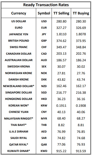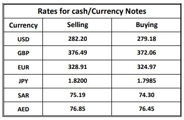 The Treasury & Capital Markets Group of the National Bank of Pakistan (NBP) issued the following Exchange Rates Bulletin on Monday.