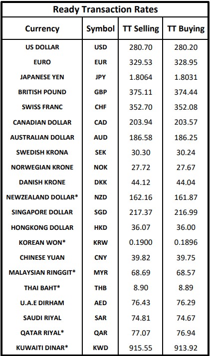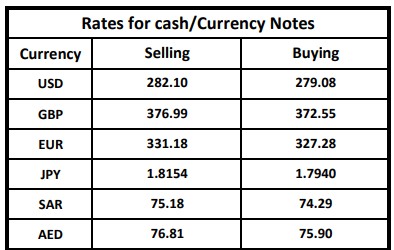 The Treasury & Capital Markets Group of the National Bank of Pakistan (NBP) issued the following Exchange Rates Bulletin on Monday.