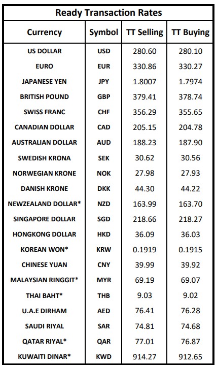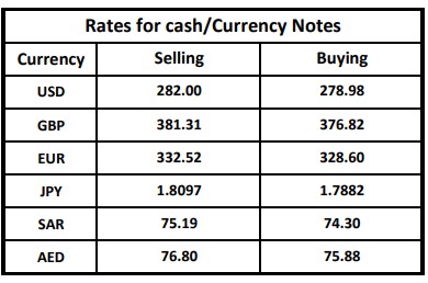 The Treasury & Capital Markets Group of the National Bank of Pakistan (NBP) issued the following Exchange Rates Bulletin on Wednesday.