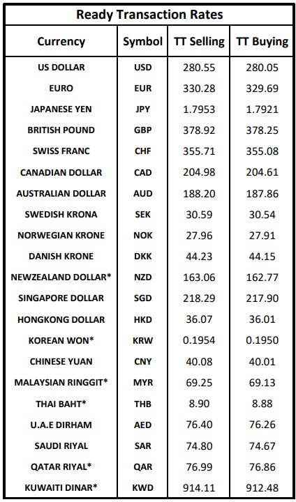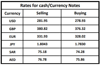 The Treasury & Capital Markets Group of the National Bank of Pakistan (NBP) issued the following Exchange Rates Bulletin on Tuesday.