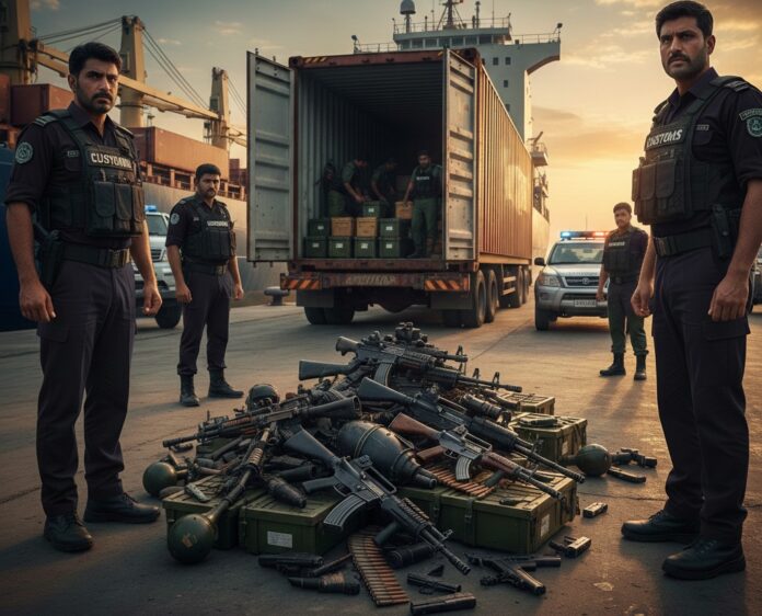 Pakistan Customs authorities at Torkham have successfully foiled an arms smuggling attempt, seizing over 21,000 rounds of SMG and rifle cartridges, along with additional weapons. The suspicious consignment was detected during a routine cargo inspection at the Torkham Customs Station.